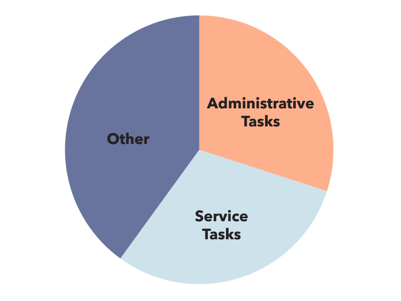 - 30% of an average technician’s working hours are taken up by administrative tasks, while only 29% is spent delivering their actual services. (Source)