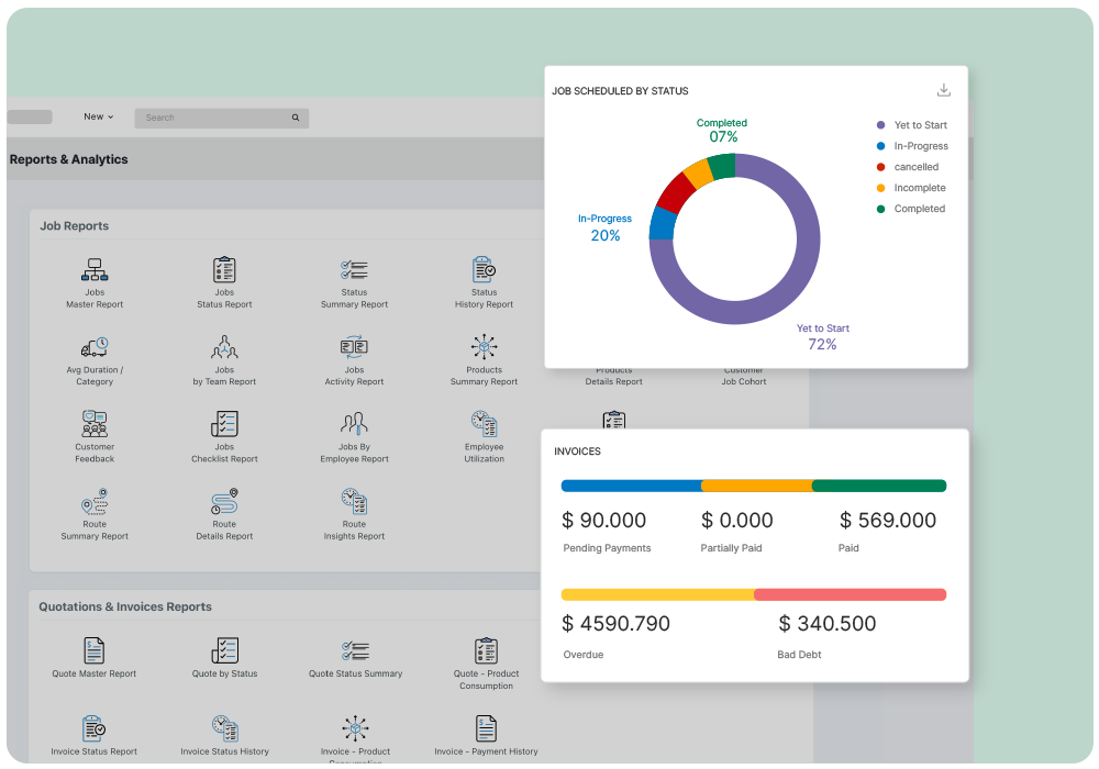 Zuper offers comprehensive, visually rich reporting capabilities that allow your executive team to gain insights into employee productivity and customer satisfaction. They can customize the interactive reports dashboard to monitor certain data so they are better able to address critical issues.