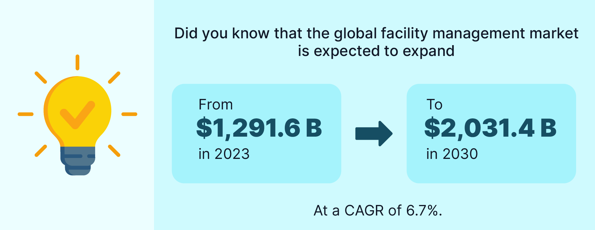Did you know that the global facility management (FM) market is expected to expand from $1,291.6 billion in 2023 to $2,031.4 billion by 2030, at a CAGR of 6.7%, and modern-day facility management has transcended from its traditional role of reactive maintenance.