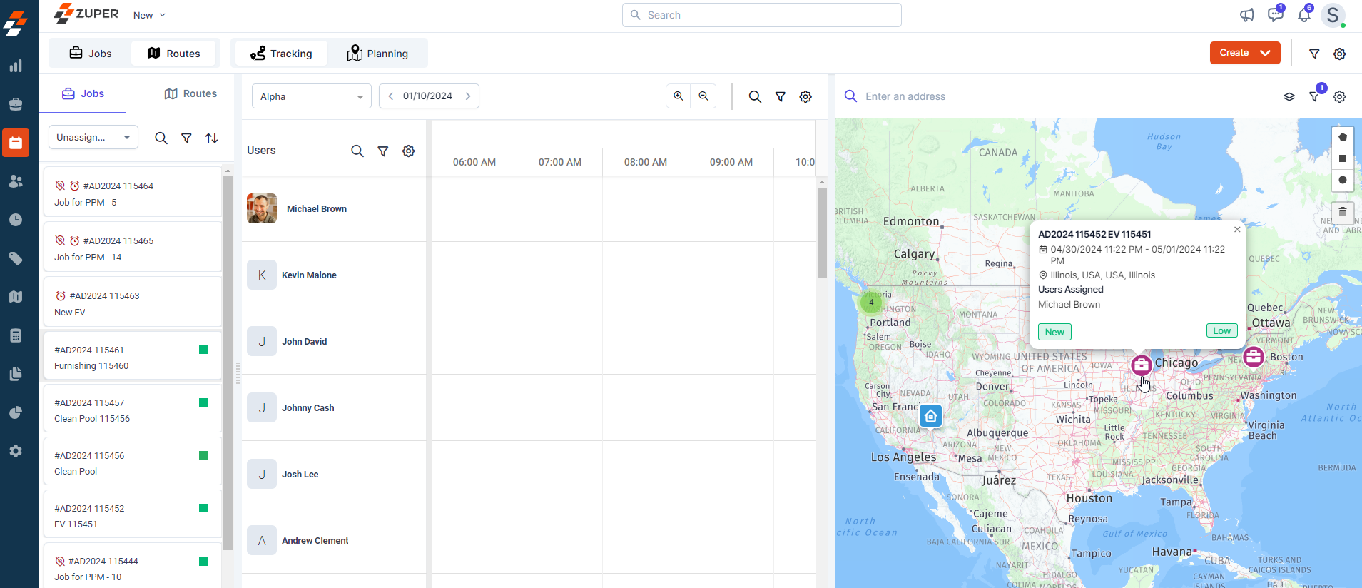 Zuper’s new dispatch board ensures you are in complete control. Unassigned and overdue jobs are instantly visible, and rescheduling is a breeze with our drag-and-drop functionality. We also offer a flexible calendar view, which will help you maintain complete control over your schedule with daily, weekly, and monthly calendar views. Quickly identify potential conflicts and optimize your team’s workflow, ensuring no tasks are left unassigned. No more scrambling to adjust job schedules while on a call with your technicians; Zuper makes it super simple.