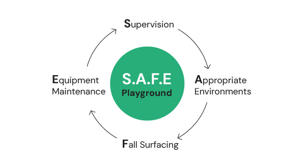 The National Program for Playground Safety (NPPS) goes beyond just equipment to create a S.A.F.E. approach to preventing injuries. This approach considers various factors that contribute to a child’s safety on the playground:
