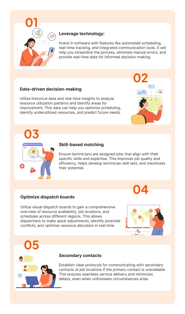 With continuous advancements in technology and data analytics, the future of resource optimization looks bright. We expect to see further integration of artificial intelligence and machine learning for even more intelligent and automated resource allocation. The rise of the Internet of Things (IoT) will provide real-time data on equipment health and technician performance, further enhancing optimization efforts. Modern technology and data-driven insights are critical drivers of successful resource optimization. Implementing robust software with automated scheduling, real-time tracking, and integrated communication tools streamlines the process, eliminates manual errors, and provides real-time data for informed decision-making.