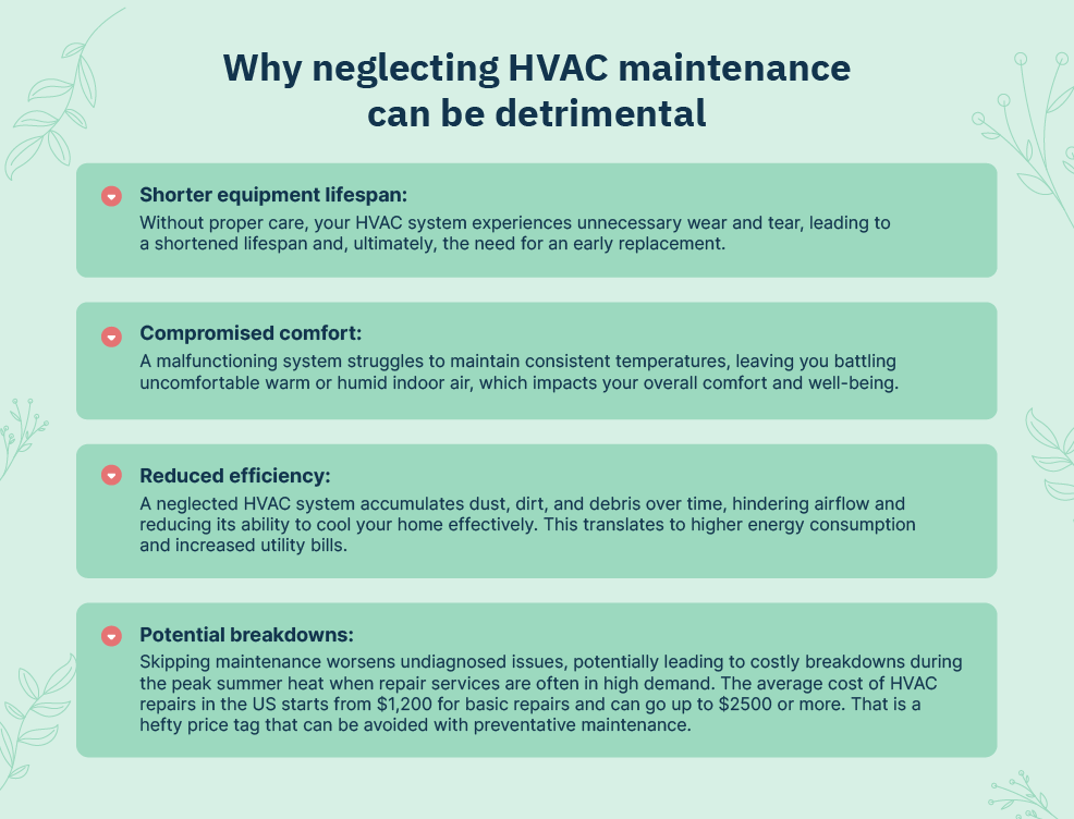 A neglected HVAC system struggles to maintain consistent temperatures, leaving you battling discomfort and frustration. Spring maintenance ensures your system operates optimally, guaranteeing that your home remains cool and comfortable throughout the summer months. Consistent and reliable temperature control allows you to create a relaxing and enjoyable environment free from the stress of fluctuating temperatures.