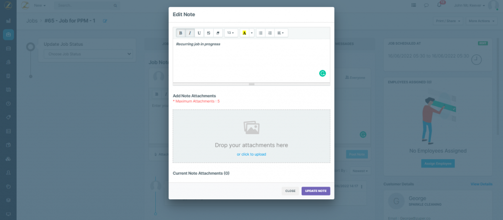 Your team can even attach images or files to the job notes section and it will be visible to other stakeholders if their comment is public.